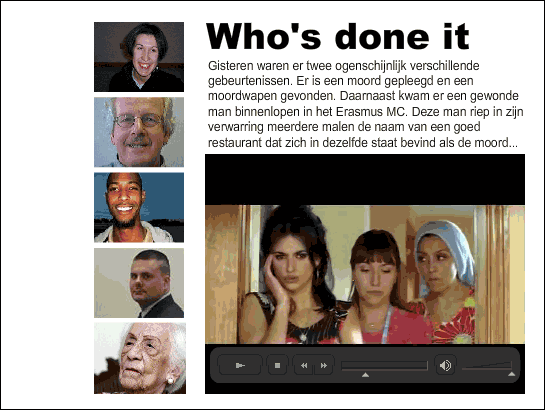 voor het filmpje van je keuze. In bovenstaand voorsbeeld is het geheel in een context geplaatst van een "Who's done it" detective. Kies een eigen context om er een mooie applicatie van te maken.