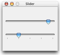 Hierboven en in de vorige les zijn allemaal ingredienten genoemd die je kunt toepassen in games of andere interfaces. In de opdracht heb je gewerkt aan een mp3 speler. Hier heb je direct te maken met allerlei interactieve elementen. Als de gebruiker met jouw product aan de slag gaat, wil je graag zo duidelijk mogelijk feedback geven over de situatie waar de gebruiker zich in bevind. Hiervoor kan je deze lessen goed gebruiken. Hieronder een voorbeeld van het maken van een slider om het volume te regelen.