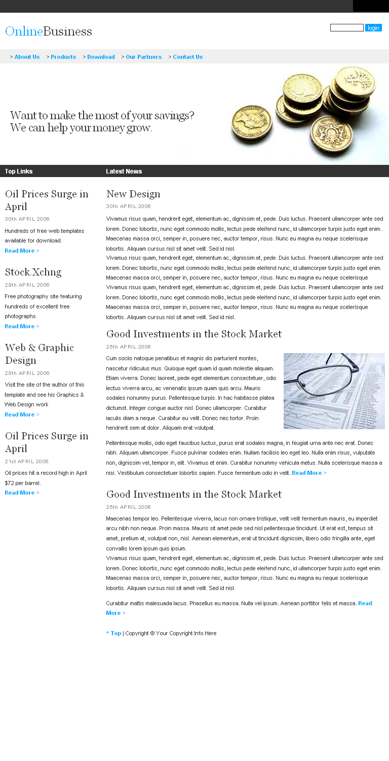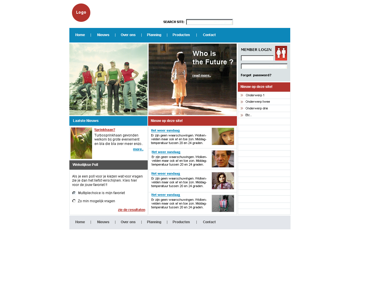 • Kolom 3: Bevat een inlogvenster. Daaronder is een kolom met allemaal links. Deze links zijn tekstlinks en hebben allemaal het zelfde icoontje voor de link. Elke link wordt gescheiden door een dun grijslijntje.