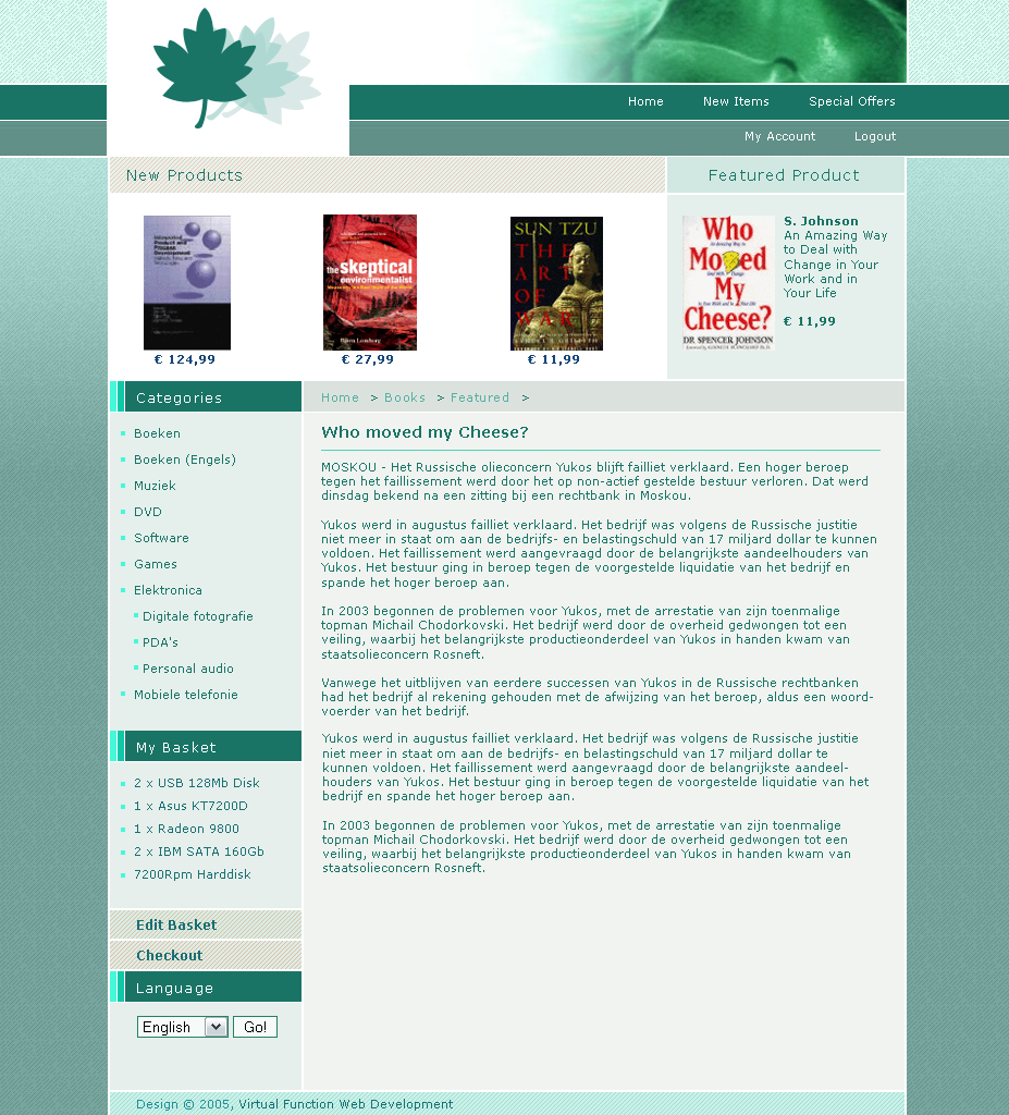 • De website staat in het midden van de internet pagina. Het donkergroene menu en de zijkanten van de pagina vullen automatisch de rest van het scherm.