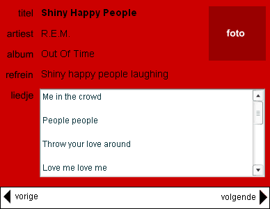 Maak de voorbeelden uit de les af. Dit is nog goed uit te breiden met het inladen van een foto van het album. Deze foto kan in een externe map staan. In de xml verwijs je met een url naar deze map. Deze url kan je in flash gebruiken om de foto in te laden.